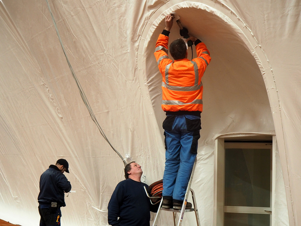 Bevor die ersten "Kunden" den Schläger schwingen konnten mussten die Elektriker noch ein letztes Mal Hand