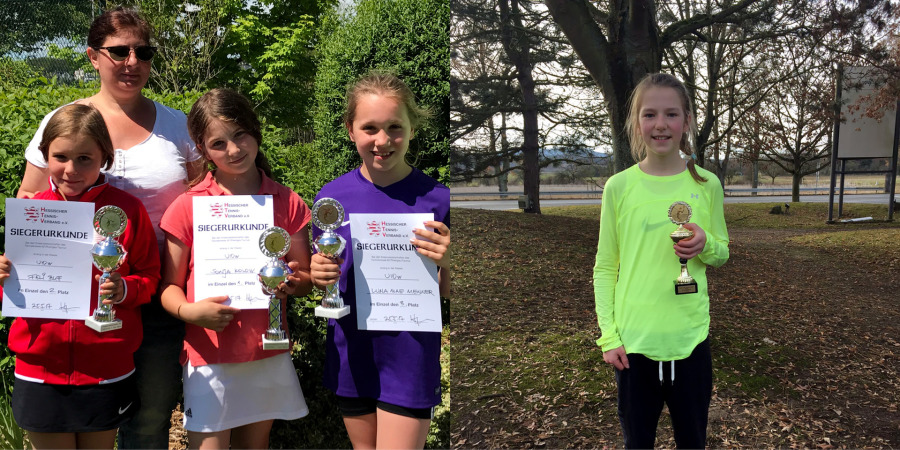 Sonja verteidigt am 25. Mai ihren Kreismeistertitel. Im Halbfinale setzte sie sich gegen Luna Mae Menner (rechts) mit 6:2 6:1 durch, wobei das Ergebnis nicht vermuten lässt, das die Siegerin der umkämpfte Partie erst nach über 2 Stunden feststand. Das Endspiel gewinnt die Rüdesheimerin mit 6:1 6:0 Feli Buff (links).